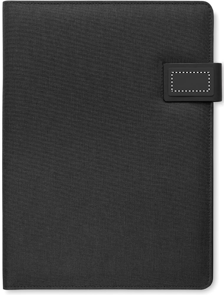 A4 conferentiemap met linnen-PU kaft. 5000 mAh powerbank en 15W magnetische draadloze oplader. 20 gelinieerde vellen notitieblok. Meerdere interne compartimenten. Magnetische sluiting. Elastische penhouder.