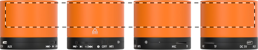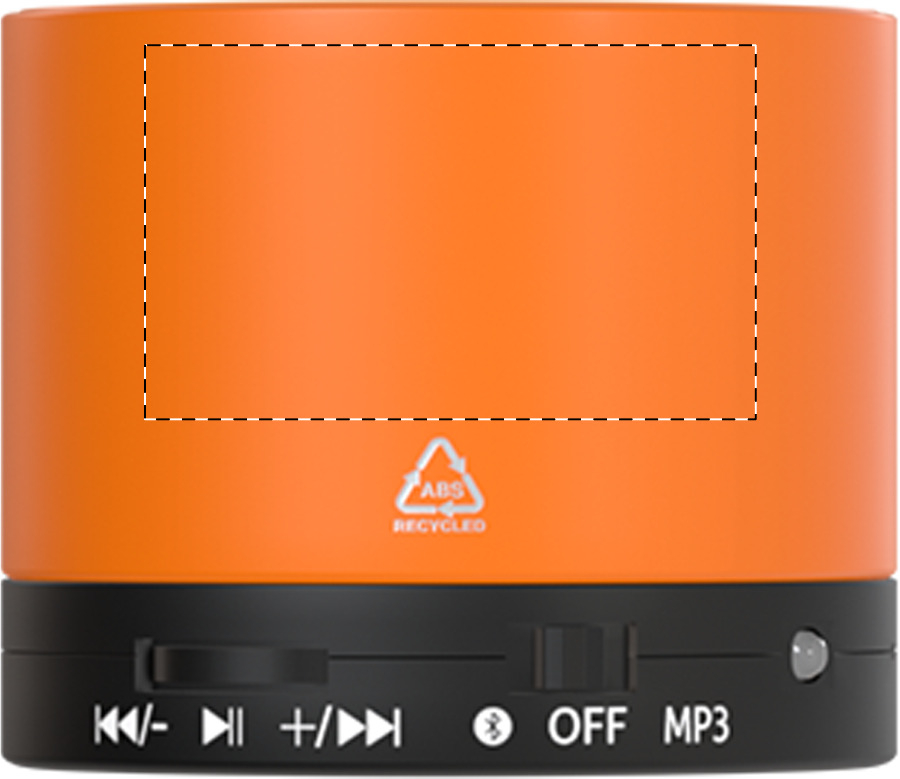 Gerecycleerde ABS draadloze luidspreker in rubbarised behuizing met metalen gaas en oplaadbare batterij (300 mAh). Met handsfree call - en micro SD MP3-afspeelfuncties. Inclusief USB lader kabel.