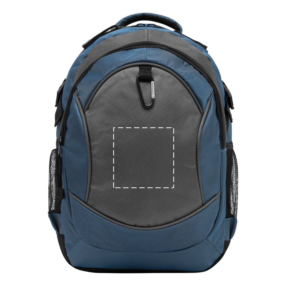 Luxe rugzak HIGH-CLASS van zware kwaliteit polyester (1680D). Hoofdvak met extra insteekvak, afsluitbaar binnenvak en een uitgang voor bijvoorbeeld snoer van oortelefoon. Voorvak met ritssluiting en karabijnhaak. 2 netvakken aan de zijkant en een pakband. Verstevigde draaggreep en gevoerde schouderbanden en rug.