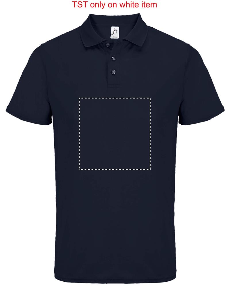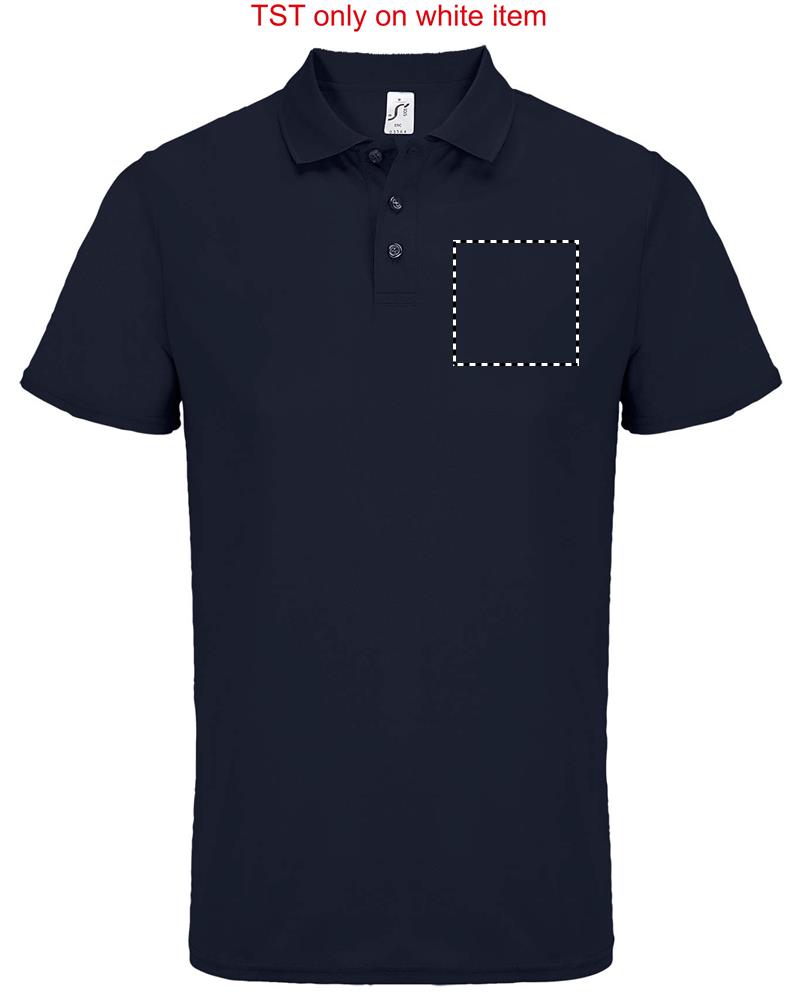 SOL'S PITCHER UNISEX POLO, sportpolo, 100% gerecycled polyester, korte mouwen, genaaid model, verstevigde sluiting met 3 ton-sur-ton knopen, nekband, geribde kraag, geschikt voor sublimatie. Raadpleeg de maattabel in de productdocumentatie voor de juiste maat.