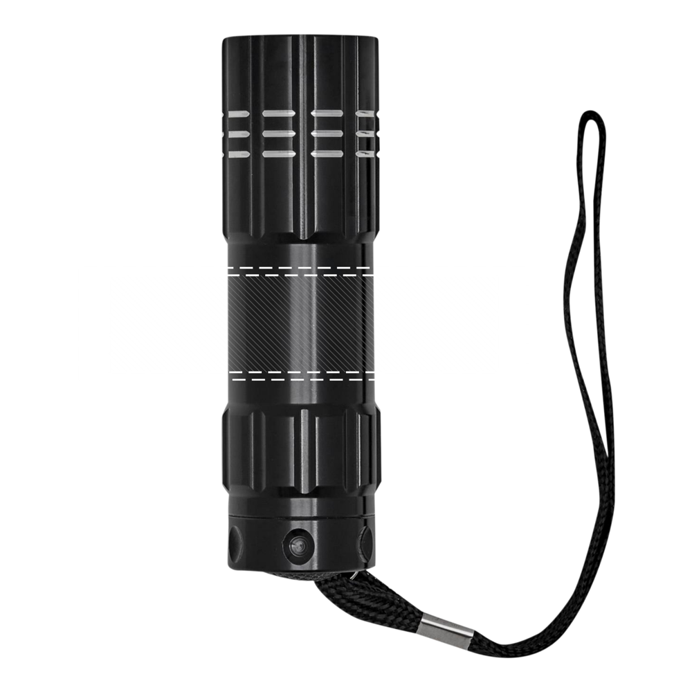 Robuust uitgevoerde LED zaklamp van metaal POWERFUL met 9 LED-lampjes (wit), werkt op batterijen (3x AAA inbegrepen).