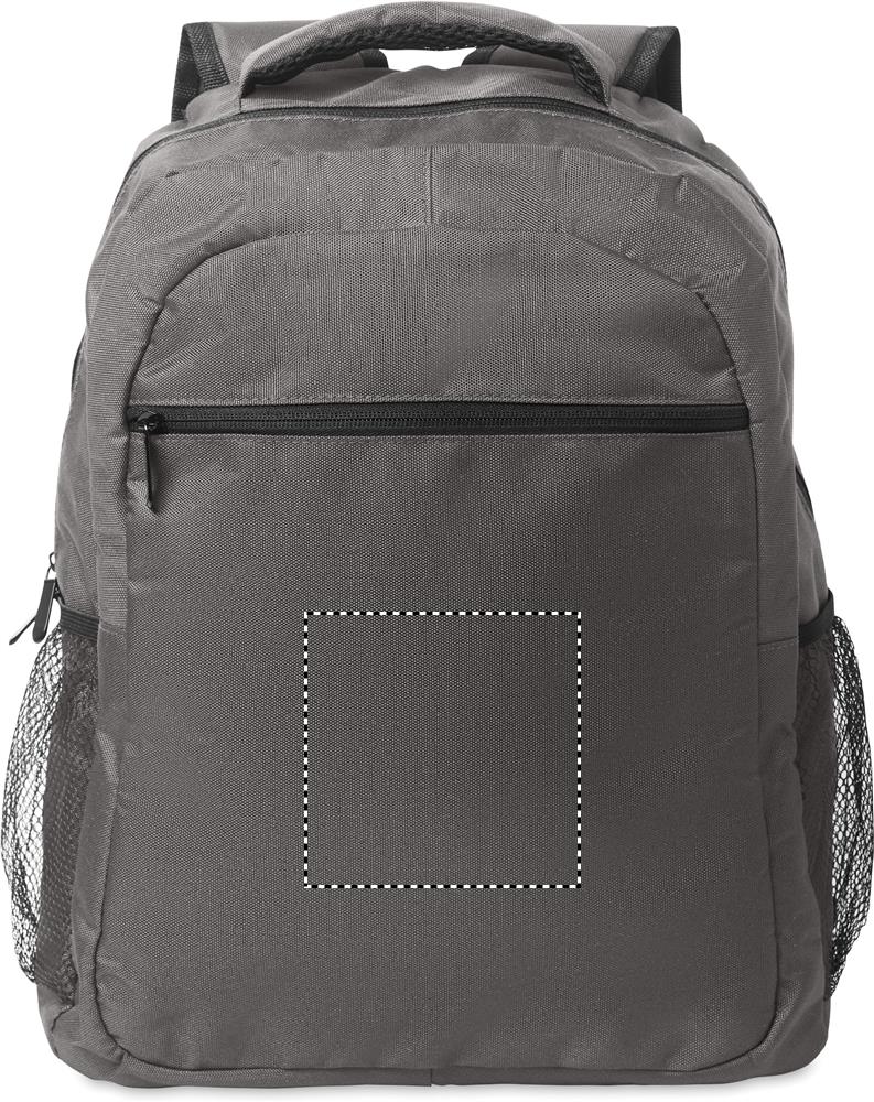 Laptoprugzak 15inch van 600D RPET polyester met gewatteerd laptopvak binnenin, meshvakken aan beide zijden en voorvak met rits.
