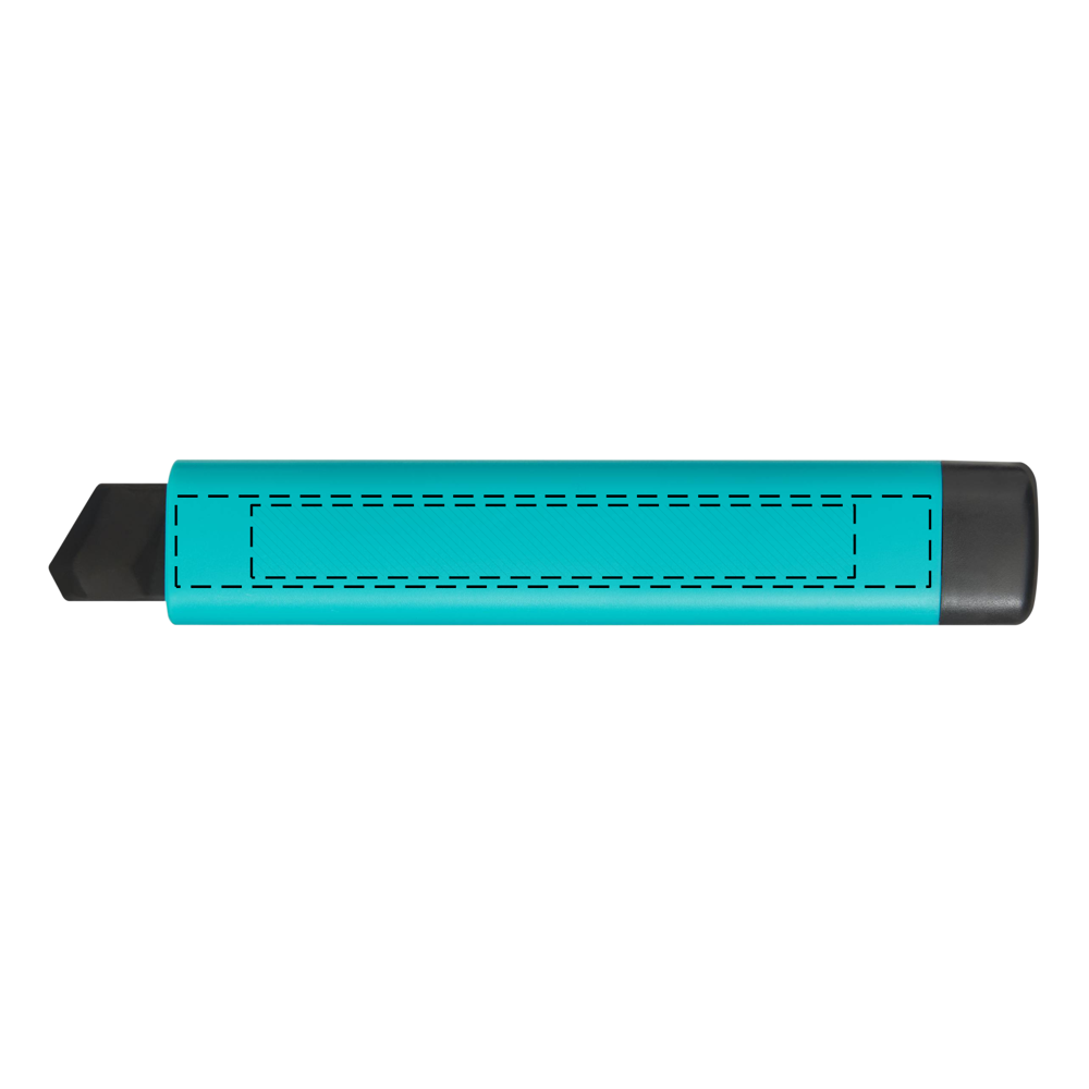 Afbreekmes RELIABLE: met beweegbaar, zwart afbreekmes van 18 mm (10 snijsegmenten en 2 reservemessen), mechanisme met schuifknop en automatische stop, kunststof behuizing, mesgeleiding van staal, voor lichte tot zware snijklussen, verpakt in een doos.